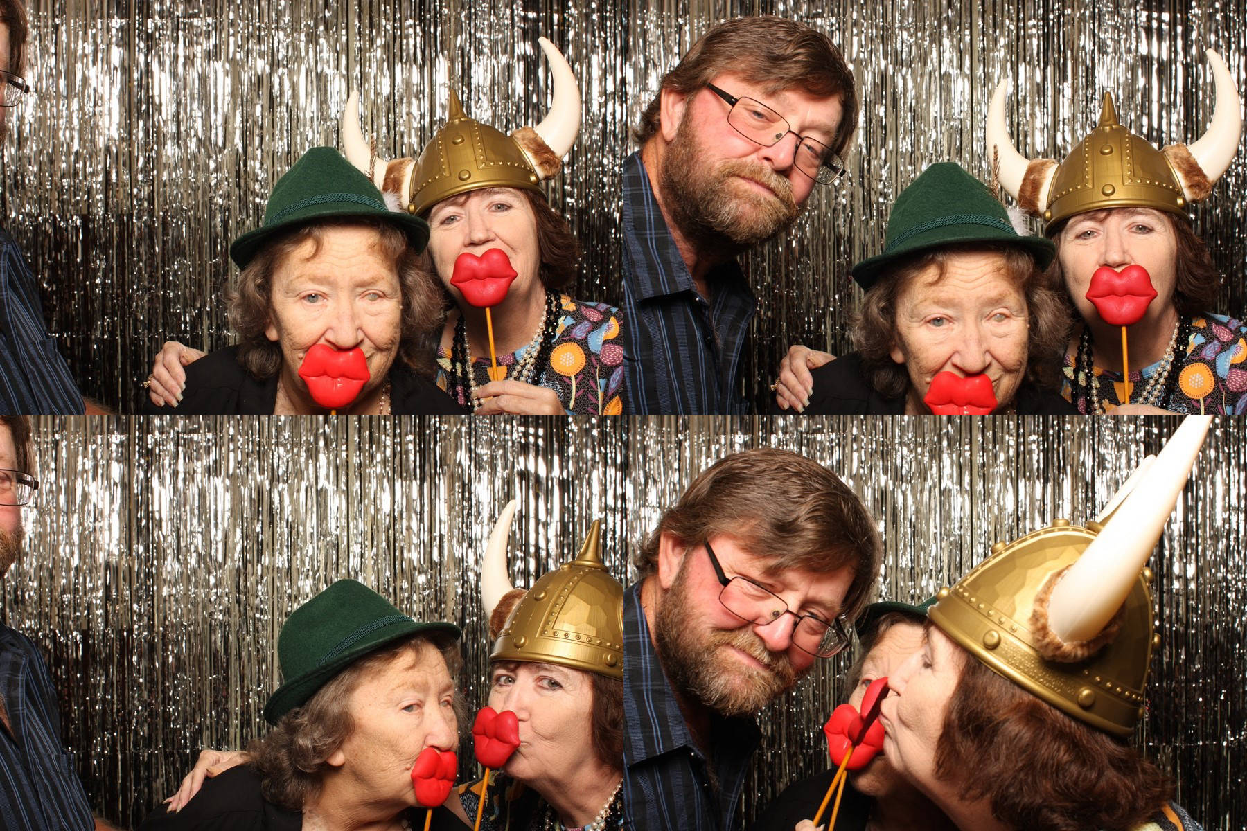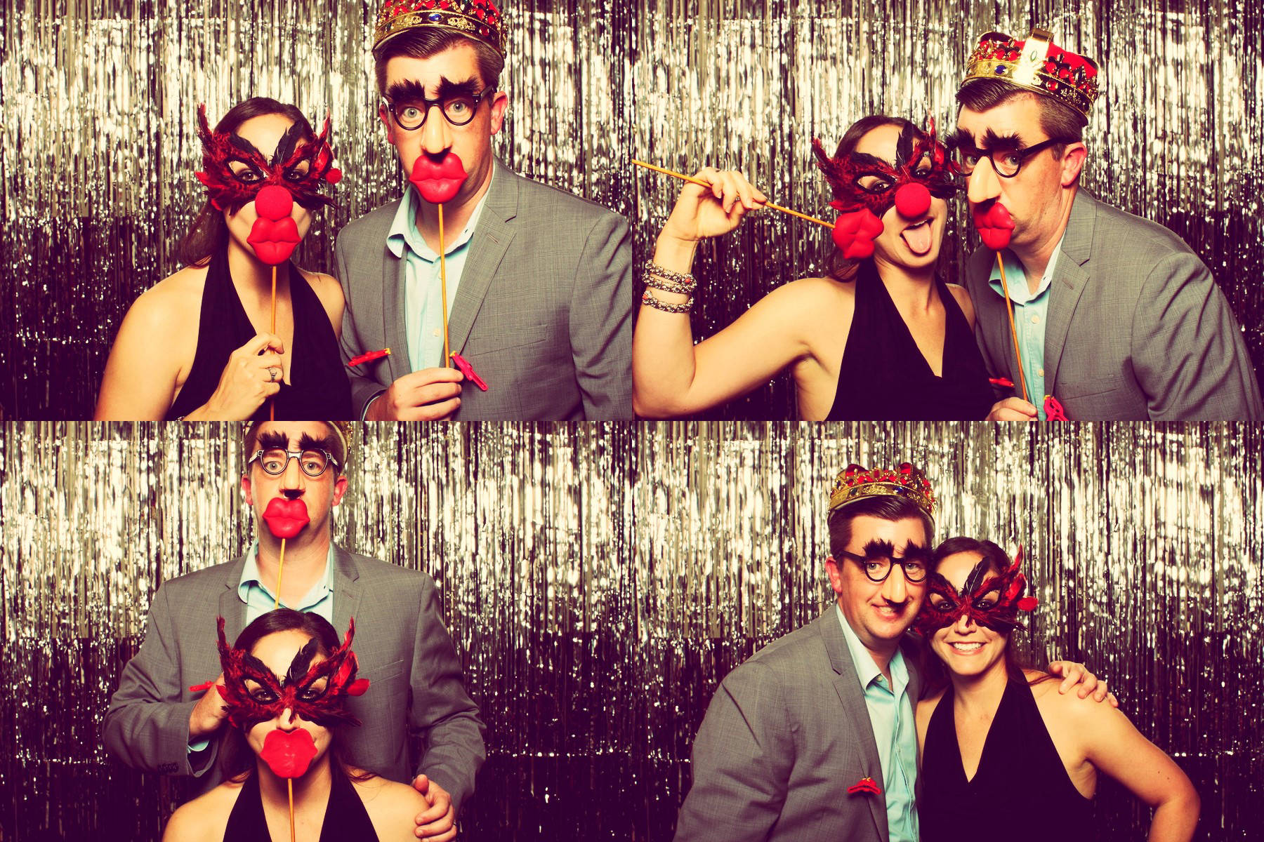 The $250 rental fee includes the photo booth itself, a selection of excellent photo booth props, and a background. Background choices are a silver ribbon background, a gold ribbon background, or a heavy red curtain background (sample images of each of these are available in the gallery below). You're also welcome to provide your own backdrop, or we can work with you on something special for your event. The booth is self-service, guests just touch the screen to begin!